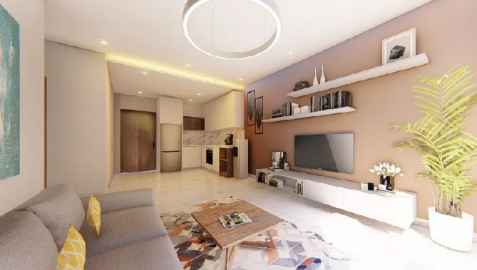 The fabric sofa which is in the sitting room has the contemporary feeling and a simple solid wood coffee table, TV cabinet are in well-proportioned. The material of kitchen marble is qualitative confluence gets contracted atmosphere. The combination of solid wood and high rebound sponge makes it more natural, which alleviates the sharp sense of geometric form in the space. Yabo provides this apartment with elaborate matching and customization. In order to be used for a long time, it is not only strict in material design and technology, but also in hardware quality.