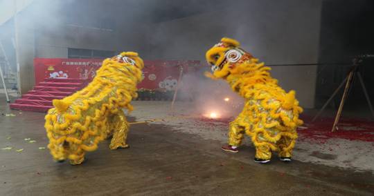 早上9:00,細(xì)雨霏霏。雅柏公司生產(chǎn)基地內(nèi)充滿歡聲笑語,鞭炮齊鳴,鑼鼓喧天,在寬敞的公司院內(nèi)一對(duì)醒獅憨態(tài)可愛,形神兼?zhèn)?。時(shí)而威風(fēng)凜凜,閃展騰挪;時(shí)而謙恭有禮,憨厚善良,逗人喜愛。起勢(shì)、常態(tài)、奮起、疑進(jìn)、抓癢、迎賓、施禮、驚躍、審視、酣睡、出洞、上臺(tái)取物等等,無不神似。巍巍醒獅帶給雅柏人新春的喜悅和新年的祝福!