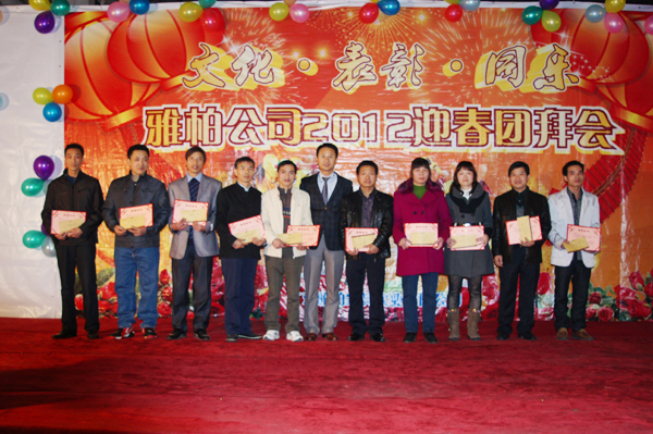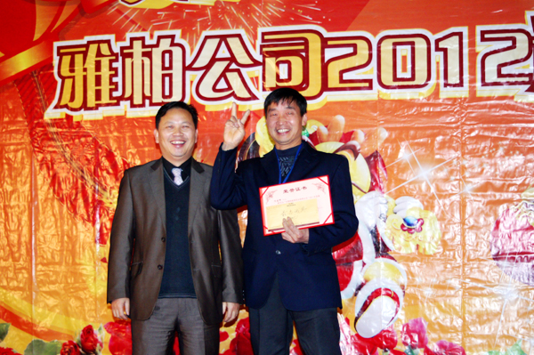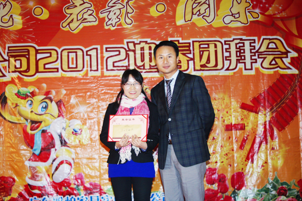 2012年度公司團(tuán)拜會(huì)上,公司評(píng)選出了2011年度十大優(yōu)秀員工、最佳新人獎(jiǎng)、最忠誠(chéng)員工、突出貢獻(xiàn)獎(jiǎng)、公司總經(jīng)理和副總經(jīng)理親自為他們頒發(fā)獎(jiǎng)金和榮譽(yù)證書。